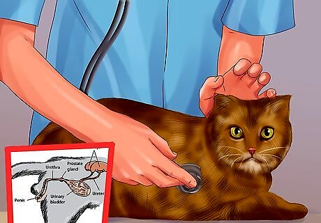 Have your cat get surgery to remove obstructions in their bladder. If your cat is diagnosed with obstructions in their bladder, such as bladder stones, your vet may recommend surgery to remove them. The surgery can be invasive and expensive, but it will effectively relieve your cat’s pain and discomfort. The surgery to remove bladder stones is called a cystotomy. It is performed by making an incision through your cat’s belly and removing the stones from your cat’s bladder. Keep in mind cats who develop bladder stones have a high risk of getting them again. Your vet may recommend medication or changes to your cat’s diet to prevent the bladder stones from coming back.