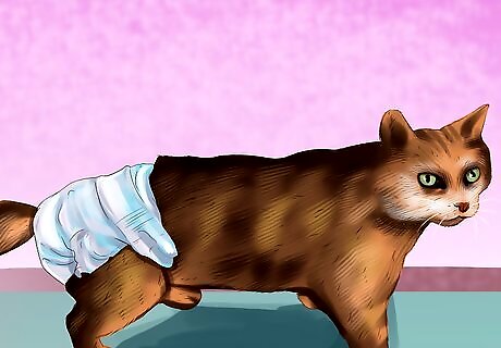 Put your cat in diapers. If your cat does not seem to be able to go to the bathroom in their litter box, your vet may recommend the use of diapers. You may need to put your cat in diapers temporarily until they recover. This will prevent accidents on your furniture or your carpet.