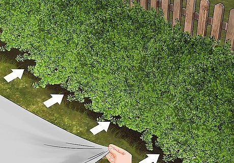 Lay down a tarp around the bushes for easy clean up. By catching your clippings with a tarp, you’ll be able to easily gather them together at the end. Alternatively, work with a bag next to you at all times, so you can simply discard your clippings into the bag as you work. You can purchase bags specifically made for disposing of yard waste from any home improvement store.