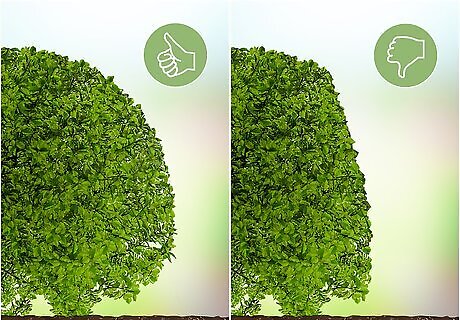 Avoid cutting the bushes so that their sides look flat. In most cases, evergreens should have a natural shape rather than a flat or geometric one. Never try to cut all branches so that they’re the same length. This is why small hand pruners are more effective than larger shears.