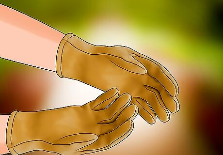 Put on gardening gloves. Purchase gloves specifically designed for gardening at any gardening or home improvement store. These protect your hands and keep them relatively clean while you work.