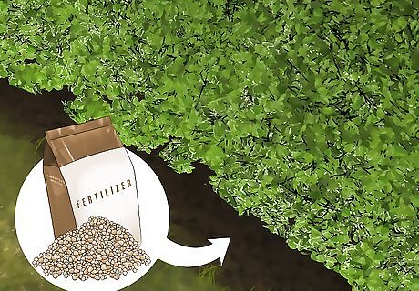 Fertilize your bushes after pruning. Now that you’ve cleared the old branches and shaped the bush, help the plant grow by adding some fertilizer to the soil around its base. Use a fertilizer that is rich in nitrogen, phosphorus, and potassium. Purchase fertilizer at your local gardening store or home improvement store.