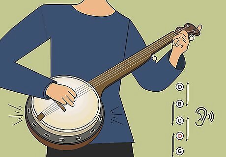Learn to tune the banjo by ear once you’re proficient. Once you get an ear for how a tuned banjo should sound, you can start tuning each string in relation to the other. You’ll be able to tell from the intervals between notes if the banjo is in tune. It’s best to start from the G string, and then to tune B, D, and high G, each off of the string before. Use a tuner or a piano to make sure that the G string’s in tune first, if you want to play with anyone else!