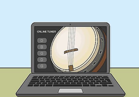 Find an online tuner for a free, quick option. If you’d rather not pay money for a tuner at a music store, you can find a variety of free tuners online. The disadvantage to using an online tuner is that it will be difficult to tune your banjo when you’re not at your computer or are out of the range of wi-fi. For example, check out a free banjo-specific tuner online at: http://www.get-tuned.com/html5-banjo-tuner.php.