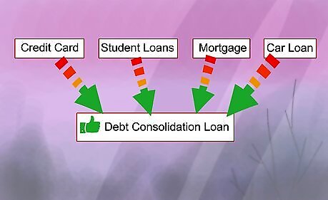 Consolidate your debt. If you have multiple credit card accounts, student loans, a mortgage, a car loan, or any combination of these debts, consolidating them into one payment may help you manage them more easily. Typically, when you consolidate debt, you’ll get a debt consolidation loan. These loans usually have a lower interest rate and require lower monthly payments. While consolidating your debt can make it easier to manage, it may also increase the amount you’ll pay in the long run because it extends your payments over a longer period of time. If your credit score is not good, you may need a co-signer to be able to get a debt consolidation loan. You can also consolidate your credit card debt by transferring all of your balances to a 0% APR credit card. If you think you can pay off your debt within 12 to 18 months, this might be a good option. However, if you think it will take you significantly longer to pay it off, this might not be a good option because the 0% APR is usually only good for 12 to 18 months.