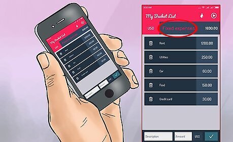 List your fixed monthly expenses. Next, look over your financial documents and record any fixed expenses you have, or those that are essential and do not change much from month to month. Fixed expenses can include things like mortgage payments or rent, credit card payments, car payments, and essential utilities like electric, water, and sewage.