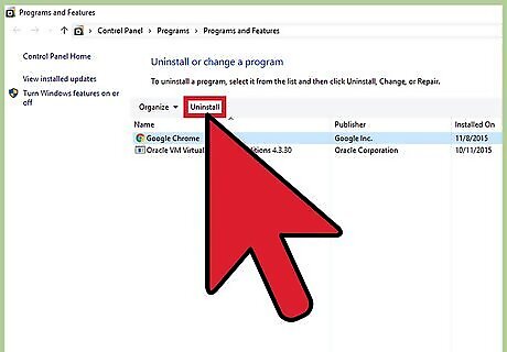 Uninstall the program. When you highlight the program you want to uninstall, the “Uninstall” command button will be added to the command bar above the list of programs. Click or tap the “Uninstall” button. (In some cases, the program’s uninstall wizard will be activated. Follow instructions given by the uninstall wizard.) A window will pop up asking if you are sure that you want to completely remove the program. Click or tap “Yes.” Uninstallation will commence, and when complete, a pop-up window will inform you that the program was successfully removed from your computer. Click “OK” to exit the window.