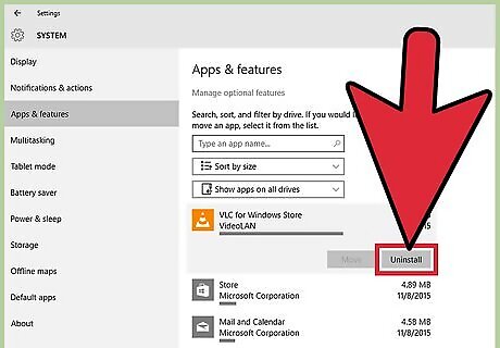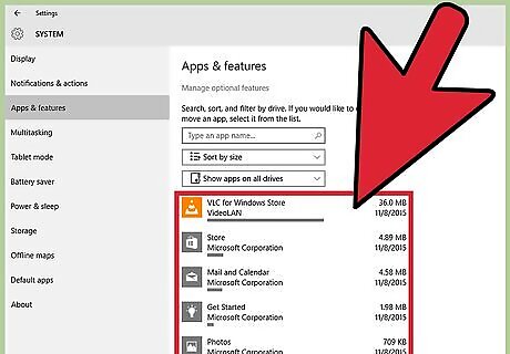 Uninstall the program or app. After you have located the app or program that you want to uninstall, click/tap on it. This will cause the “Uninstall” button for the app/program to appear. Another and separate dialog box will appear and remind you that the app and its related info will be uninstalled. Click/tap the “Uninstall” button at the bottom right of the dialog box. The app or program will be uninstalled. You cannot uninstall apps that came installed with Windows, such as the Calendar, Store, or Weather apps.