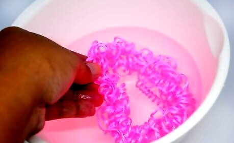 Dip the yarn in lukewarm water. Fill a container or your sink with lukewarm water, then place the yarn in the container or sink. You’ll be able to see the kinks straightening out within a matter of seconds. If your yarn is extremely kinked, allow it to soak for up to 30 minutes. Use lukewarm, rather than hot water, to prevent the yarn from felting. If your yarn has not been pre-treated for washing, it may shrink in warm water! You can add a bit of wool soap to the water, if desired.
