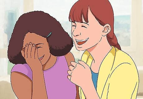 Laugh and be silly with others. Make fun a priority and do lighthearted activities, especially with others. Whether this is telling jokes, being purposefully silly, or looking at things you know makes you laugh, make time for smiles and laughter. Laughter can lift your mood and help you connect with others. Laughter is much more fun when shared with others. Get together with some friends or family and do things that make you crack up. Watch funny videos, play games, and do silly things together.