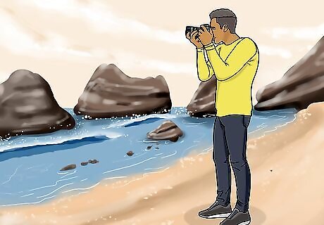 Stand farther away if you want to capture a wide city or landscape. If you’re trying to capture a wide view of a city or landscape, try to position yourself so that you are farther away from all the elements you want to capture. This will make your city or landscape appear more realistically, and help you avoid ending up with an image where some elements are disproportionately larger or smaller than you wanted them to appear. By standing farther away from all buildings, trees, or other city or landscape elements, they will appear more proportionate to their actual size in real life.