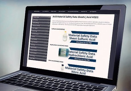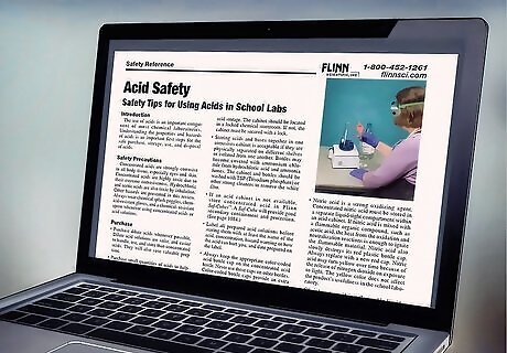Obtain a Materials Safety Data Sheet for each acid. The Materials Safety Data Sheet is a reference sheet that contains information on a particular chemical. It will include warnings (corrosive, explosive, flammable, etc.). It will also suggest proper safety techniques for using that particular chemical. This is the ultimate reference for the safe use of any chemical, including acids.