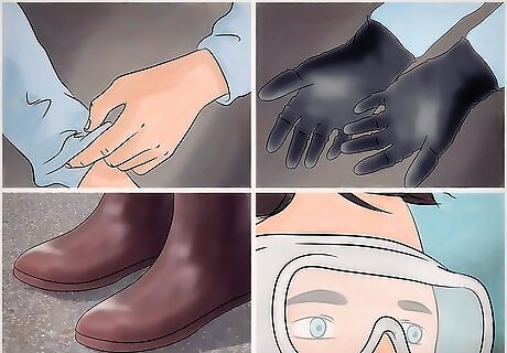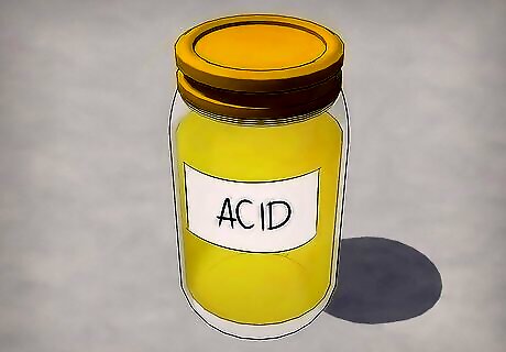 Dress appropriately for handling corrosive materials. Acids are corrosive by nature. Some more so than others. You should wear pants, close-toed shoes, and long sleeves if you plan to work with acids. You should also wear a lab apron to prevent acid from getting on your clothing and eating through it.