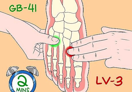 - Press on each point firmly for 30 seconds to 2 minutes. Use pressure, but don't press so hard that it hurts.