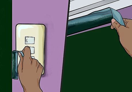 Protect any light switches, outlets, baseboards, and window sills. You can either remove the light switches, outlet covers, and baseboards, or you can cover them with painter's tape. Cover any window sills with painter's tape as well. Be sure to seal the tape using a pallet knife or a flat painter's knife.