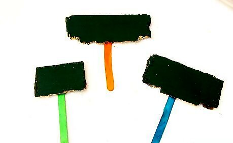 Create garden plant markers. Label your herbs and plants in your garden by painting garden plant markers with chalkboard paint, and then writing the herb or plant names on the surface with chalk.