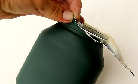 Remove the painter's tape. Lightly score the edges of the painter's tape with a craft knife or scissors, and pull the tape off. By scoring the edges, you lessen the chances of the tape tearing the paint when you remove it. If there are any gaps along the edges, fill them in with paint. If there is any excess paint, scrape it off with a craft knife.
