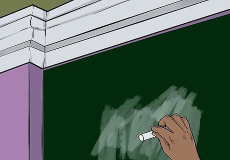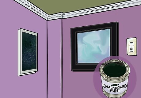 Use chalkboard paint on walls. You can turn most walls into a fun, interactive surface with chalkboard paint. This works great in kitchens, offices, and playrooms. It allows you to write recipes and shopping lists. It can also be used as an outlet for your creativity. This section will teach you how to apply chalkboard paint to a wall.
