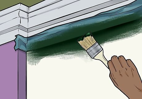 Paint around the windows and wall edges. Using a paint brush, start applying the paint around the windows (if they are in the wall you are painting) and around the wall edges. This means that, if you are painting an entire wall, you will be painting the crease between the walls and the crease where the wall and ceiling meet. Wait for the paint to dry, about two to four hours, and apply a second coat.