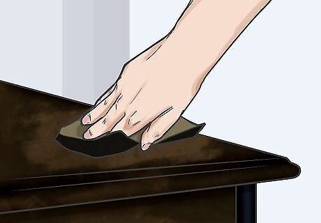 Sand your surface, if necessary. The texture of the wood will still show after you have painted your piece, so if you want a smoother finish, sand it down with 120- to 200-grit sandpaper. Use a sanding block, and sand along the wood grain. Once you are done sanding, wipe the surface clean with a tack cloth to get rid of any of any dust caused by the sanding.