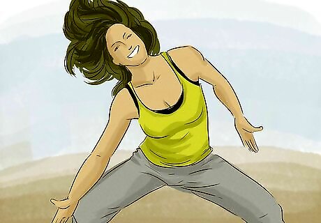 Use jumping in dance. Jumping is a way to bring emphasis to your movements. If you struggle with depression, jumping can help, as people with depression tend to have decreased vertical movements. Practice moving in all directions and getting your whole body involved. Find as many ways to jump as you can. For example, you can jump, skip, leap, and twirl.