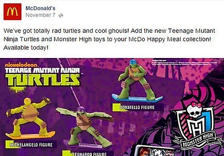 Make a limited-time offer on your products or services. You can create promo to make people buy your products or services using limited-time offers. Creating an offer related to your business sales is a feature of your business page. Go to your business page and click on the “Offer, Event+” link on the top of the status field. Click on “Offer” from the drop-down menu. Set up your offer page. Type the title and description of your offer in the required fields. Upload an image to represent your offer. Select the expiration date of your offer from the drop-down calendar menu, and put the claims limit for your offer. Remember, your offer must be available for a limited time, and the title and description part of your offer must contain a fixed off percentage of the total purchase.