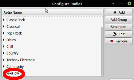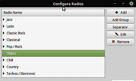Type in the name of your new group and select a parent group and press Save. If you select the parent group as root, you'll find the new group here.Radio Tray M4 Pic 6.png If you select the parent group as something else (for example "Classic Rock"), you'll find the new group underneath that group. Radio Tray M4 Pic 7.png
