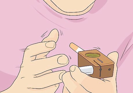 Know the features of the Launch Box and its accessories. The kit comes with the Launch Box, two batteries with rubber protective caps, a battery charger, a cleaning brush, and a glass stem used to inhale the vapor.The actual Launch Box contains the following features: The trench, which consists of a screen to contain the material. The lid, which is often engraved with a design and must be closed for effective vaporization. The lid locks in place to contain the vapor. A draw hole, where the vapor is formed and inhaled. A light, which is located within the draw hole and acts a battery life indicator (the dimmer the light, the less charge the battery has). The battery hole, where the battery is held and engaged to use the device. It contains a rubber pushback ring that prevents the battery from accidentally engaging when not in use.