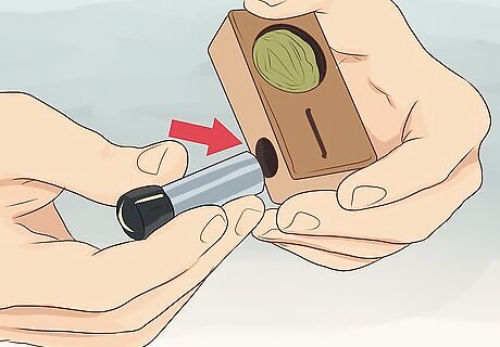 Insert the positive end of a battery into the battery hole. Remove the cap first, then insert it into the hole, positive end first. The rubber pushback ring will prevent the battery from engaging until you're ready to take a hit. Placing the rubber cap on the negative end of the battery will make engaging the battery more comfortable for your hands.