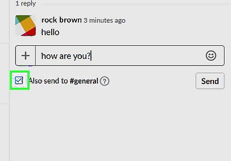 Open Slack. It’s in the Applications folder on a Mac and the Windows menu on a PC. If you prefer, go to https://slack.com/signin in a browser, then follow the on-screen instructions to access your workspace. Use this method if you want your reply to a thread to appear to everyone in the channel. Even if people in the channel aren’t subscribed to the thread, this method ensures that they won’t miss your reply.