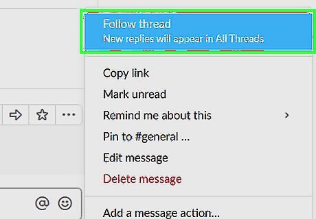 Open Slack. It’s in the Applications folder on a Mac and the Windows menu on a PC. If you prefer, go to https://slack.com/signin in a browser, then follow the on-screen instructions to access your workspace. If you commented on the thread you want to follow, there’s no need to take additional action—commenting on the thread adds it to the list of threads you follow.