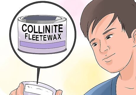 Choose an appropriate variety of boating wax. The variety of boating wax you use will vary, depending on the style and the surface of your boat's gelcoat. Keeping gelcoat coated with wax can help the gelcoat maintain its shine for a long time, offering a protective buffer between the coat and the water. Collinite 885 is a commonly used and recommended boating wax, used also in surfing and for other purposes.