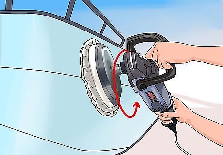 Consider using a polish or buffing compound. Both polish and buffing compound are abrasives, which restore the shine to your boat’s fiberglass gelcoat by removing imperfections, discolorations and scrapes in the surface, increasing the reflective shine. Choose polish if your boat only needs light refinishing. Go with a stronger rubbing compound if the surface is excessively pitted or chalky, signs that the surface needs a much more substantial cleaning. Be very careful when using a rubbing compound. Gelcoat is extremely thin and an aggressive compound can burn through it quickly, necessitating an expensive and time-consuming repair job.