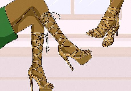 Choose ankle straps that enhance your legs and feet. Try ankle-high gladiator straps if you have delicate ankles. A wide strap will make thin legs look fuller, while a thin, nude strap that sits lower on the ankle will flatter heavier legs. Choose a t-strap if you’d like to look shorter and make your foot look wider.
