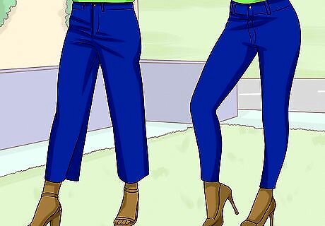 Choose a heel that complements your figure. Stilettos and kitten heels flatter slim body types and slim ankles. Look for chunkier, stacked heels if you’re curvy or want to balance larger and more muscular calves. Choose a cone heel for any body type. Also look for platform wedges, which flatter most body types and can add inches if you’re short.