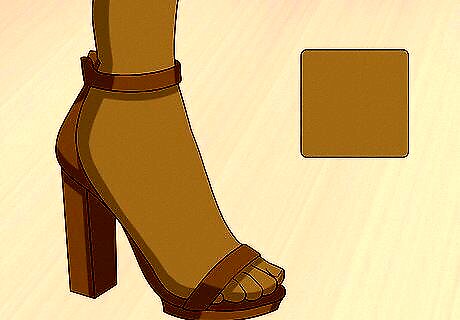 Choose a flattering nude shade. Find a shade that matches your skin tone. For example, if you have darker skin, look for a darker heel that blends with your skin tone. Match the heel to your skin tone to create an illusion that you have longer legs. Wearing nude heels that blend with your skin is also slimming and can minimize large feet or ankles.