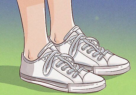Wear sandals for a spring or summer vibe. Choose simple straps for a beachy, dressed down look. Alternatively, pick a statement shoe like a gladiator sandal to add a little flair to your look. Opt for black or nude sandals to keep your outfit casual chic, or add a twist with a bright color or pattern. For instance, you might pick pale blue sandals for a beachy brunch or polka-dot espadrilles for a playful weekend vibe.