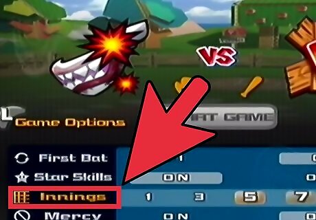 Select the number of innings to be played and whether you want to be home team or away. The home team has a slight advantage. If you are just learning, choose a smaller inning amount. You can choose from 1, 3, 5, 7, and 9 innings.