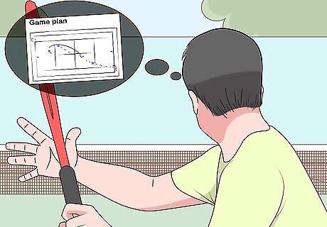 Create a plan based on your strengths. After practicing and preparing for the match, you will know what your strengths and weaknesses are. Regardless of who your opponent is, create a game plan that hinges on your strengths and that allows you to capitalize on these strengths. Having a game plan that fits your strengths will help you stay confident and raise your chances of succeeding. If you prefer moving to your right side, create a game plan that forces your opponent to hit the ball to your right.