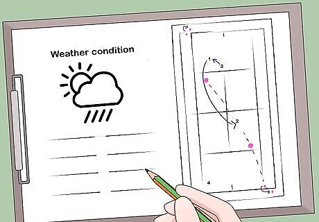 Consider the weather conditions and how they will affect the match. Weather can be used to your advantage if you strategize correctly. By planning ahead and anticipating the weather conditions before the match, you will be prepared and have an advantage over your opponent. If you the weather forecast calls for rain on the day of your match, wear clothing that will keep you dry and practice making shots on a wet tennis court the day before the match. Keep the weather as a part of your game plan so that you can be prepared and ready for whatever comes your way.