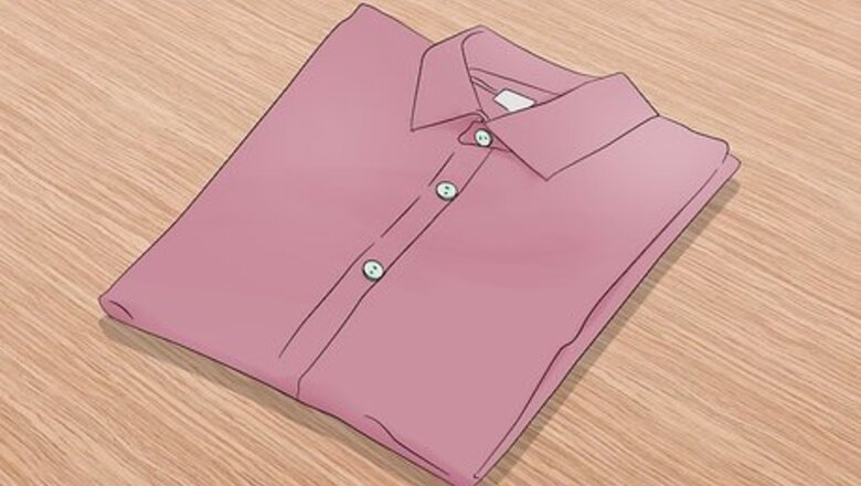 Lay 3 or 4 overlapping sheets of tissue paper on a flat surface. Position each piece of tissue paper so its left edge is 2 inches (5.1 cm)-3 inches (7.6 cm) to the right from the sheet directly below. Use more tissue paper for a larger clothing item and less for a smaller one. If your piece of clothing is quite small, like a tie or thin tank top, consider using half-size sheets of tissue paper. You can alternate colors of tissue paper or use the same color throughout.