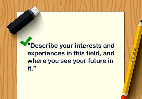 Read any specific questions mentioned. Sometimes, an institution or organization will provide a list of specific questions or topics they want you to address. If this is the case, review the list carefully so that you can outline answers that directly answer those concerns. Often, these questions will be listed directly on the application, or otherwise on the job posting or program web page. If you're not sure if your application needs to address specific questions, reach out to the program coordinator or the contact person listed on the posting.