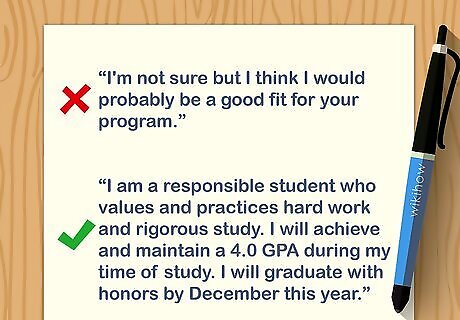 Maintain a positive tone. Write in an optimistic, confident tone, even if you're addressing difficult subjects. Your statement should show how you will address problems and create solutions, and your tone should reflect that. Avoid uncertain or weak phrasing like, “I'm not sure but I think I would probably be a good fit for your program.” Even when discussing challenges or difficulties you faced, focus on your triumphs over those problems.