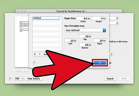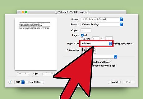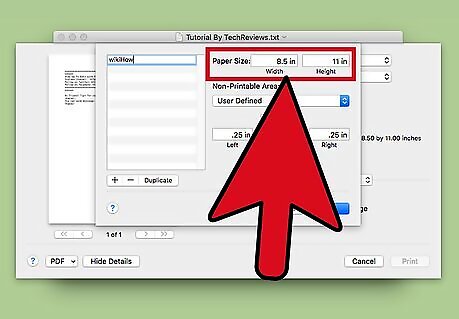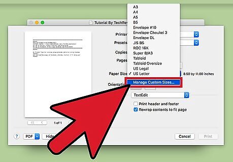 - If you want to make a custom page size for something you're printing, go to "File > Print > Show Details > Paper size > Manage Custom Sizes > +" and create the new page size.