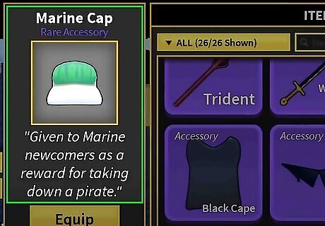 Marine Cap. As a Marine, get it from any Pirate the First, Second, or Third Sea as long as your honor is above 250,000 You get +7.5% damage on Sword/Gun attacks, 10% cooldown reduction on Sword/Gun attacks.