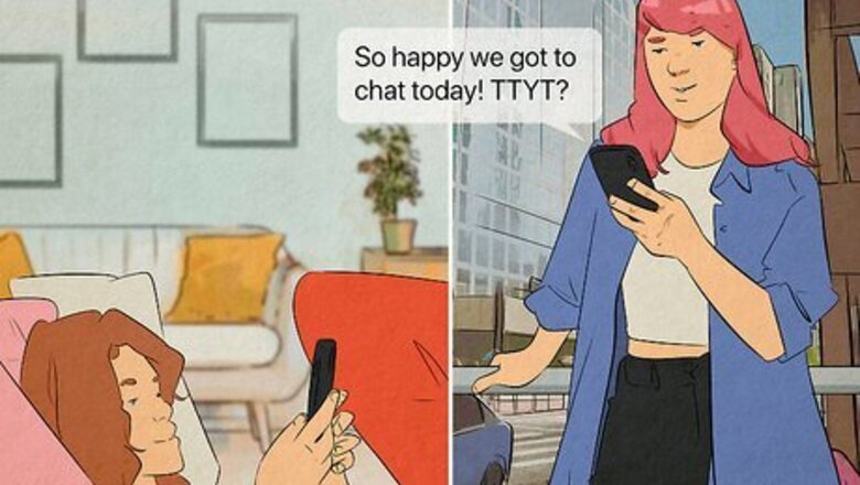 End a conversation with TTYT if you’re busy. It’s common to use TTYT when you have something more pressing to do, whether that means work, studying, eating a meal, or just heading to bed for the night. Include TTYT in a message when you have to go—and, if you want to, briefly explain why you can’t keep talking. “Ahh! I lost track of time, and I really have to go. ???? TTYT!” “I’m about to go to dinner with the fam, so I’ll ttyt! ????”
