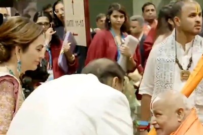 The couple welcomed Jagadguru Rambhadracharya, the founder head of Tulsi Peeth, at the 'Shubh Ashirwd' ceremony for Anant Ambani and Radhika Merchant, and sought the spiritual leader's blessings