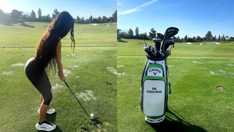 Reality TV star Kim Kardashian was in the mood for golf on Sunday, and she shared the vibes with fans, too. Kim posted a couple of pictures on Instagram of her latest golfing encounter. In one image, she is poised to tee off while the second is a shot of a bagful of golf clubs.