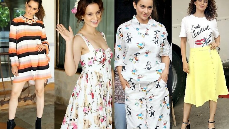 From interviews, public appearances at colleges to featuring in a full-fledged song by comedy group AIB, Kangana is doing it all to make Simran a success at the box-office. And during this promotional process, the B-town beauty was seen sporting a varied range of modish outfits - jumpsuit, saree, dress, shirt and a skirt - flaunting her fearless fashion sense and pulling each garment off like a true diva.
