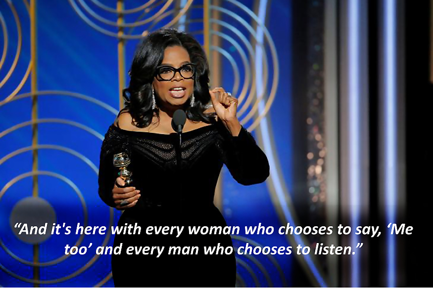 Winfrey, who along with most of the show’s other attendees donned a black gown to mark a protest against sexual misconduct joining the likes of Meryl Streep, Steven Spielberg, Barbra Streisand and Sophia Loren.